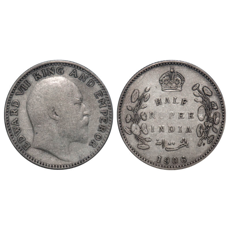Edward VII, Silver, Half Rupee, 1906, Bombay Mint, 'B' incused, No dot. F. Prid 315. GK 963. Fine+. Very Scarce.