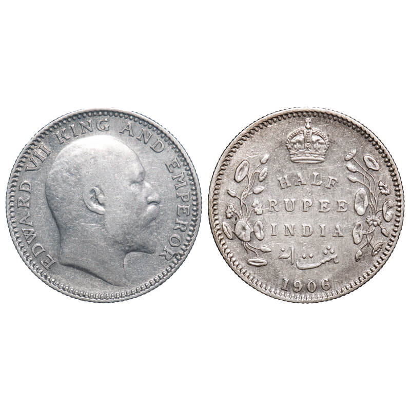 Edward VII, Silver, Half Rupee, 1906, Calcutta Mint, No mint mark. F. Prid 310. GK 964. Extremely Fine. Scarce.