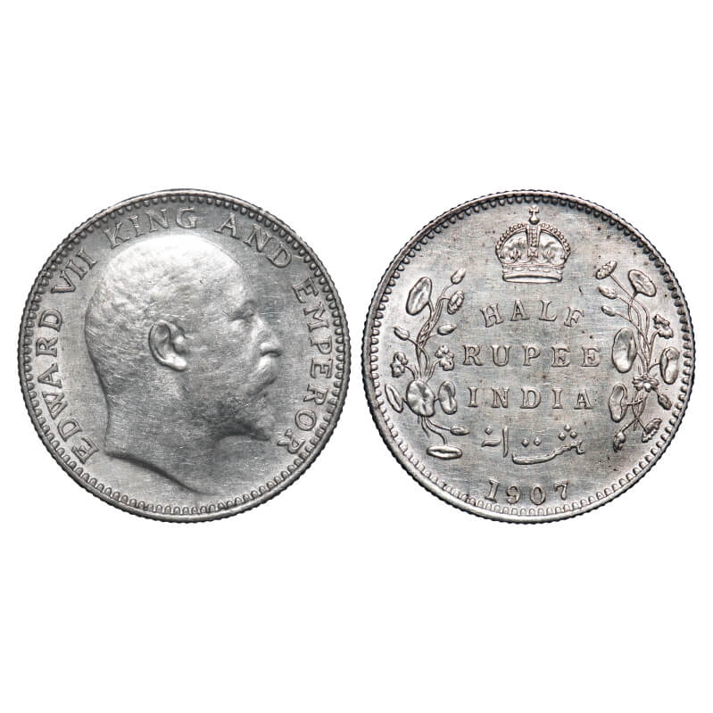 Edward VII, Silver, Half Rupee, 1907, Bombay Mint, 'B' incused and dot. F. Prid 316. GK 965. Extremely Fine+. Scarce.