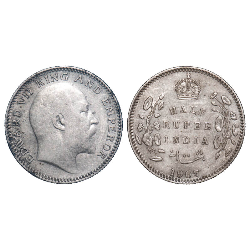 Edward VII, Silver, Half Rupee, 1907, Calcutta Mint, No mint mark. F. Prid 311. GK 967. Extremely Fine+. Very Scarce.
