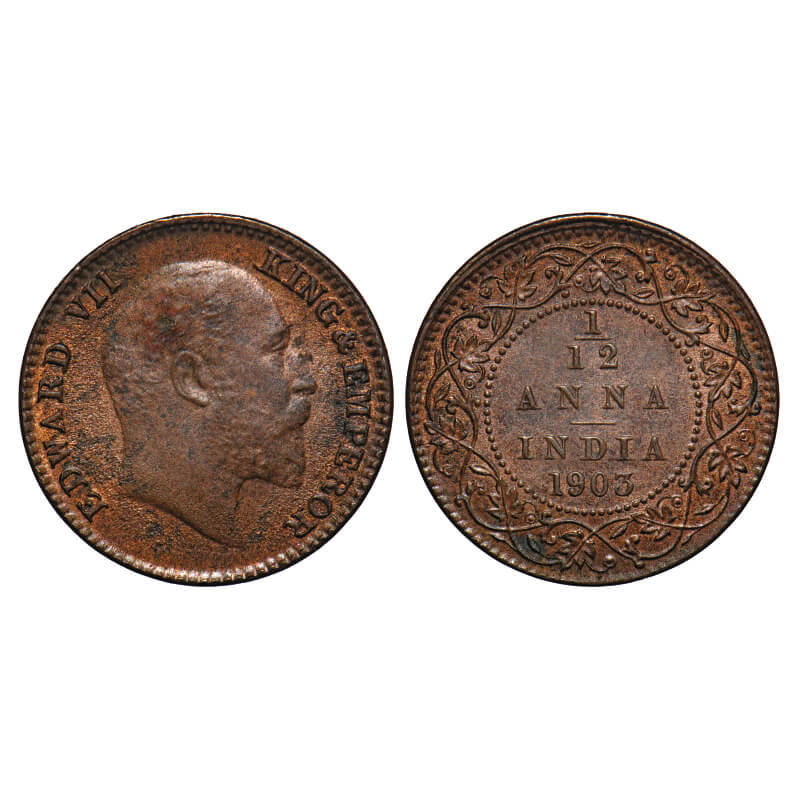 Edward VII, Copper, 1/12 Anna, 1903, Calcutta Mint, No mint mark. F. Prid 818. GK 1012. Uncirculated. Very Scarce.