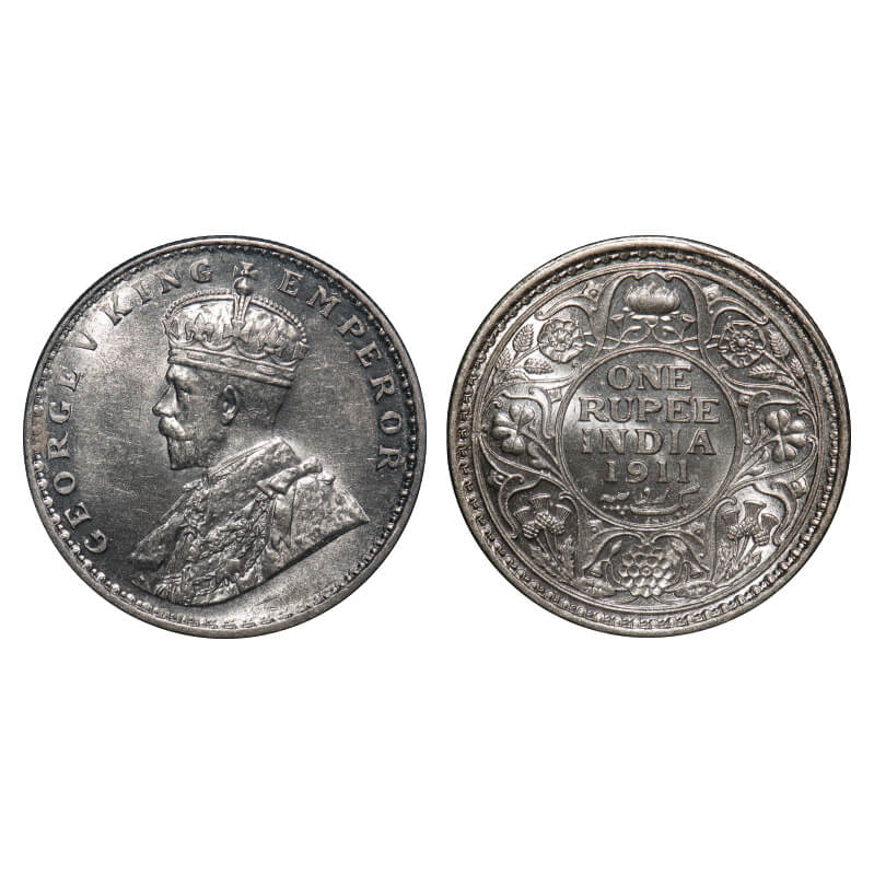 George V, Silver, Rupee, 1911, Calcutta Mint, No dot, Pig-type. F. Prid 207. GK 1021. Brilliant Uncirculated. Extremely Rare.