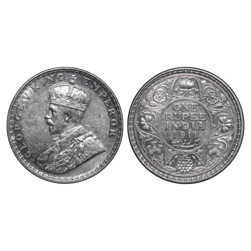 George V, Silver, Rupee, 1911, Bombay Mint, Dot, Pig-type. F. Prid 217. GK 1022. Uncirculated. Rare.
