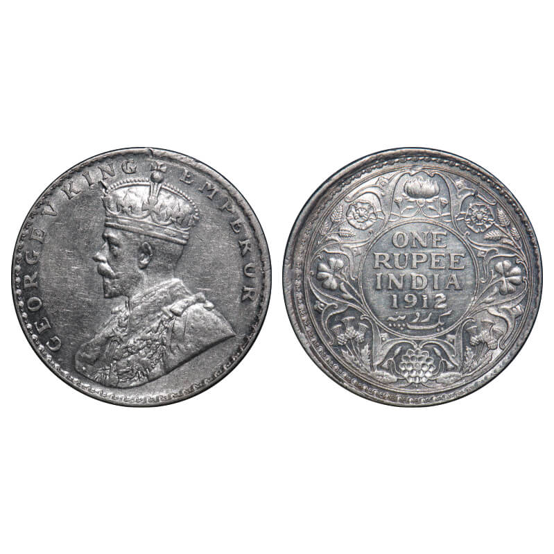 George V, Silver, Rupee, 1912, Bombay Mint, Dot, Re-Drawn Elephant with long tusk. F. Prid 218. GK ...