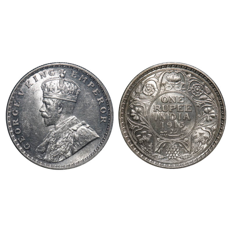 George V, Silver, Rupee, 1915, Calcutta Mint, No dot. F. Prid 211. GK 1031. Brilliant Uncirculated. Rare.