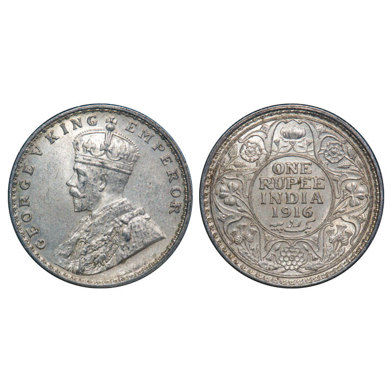 George V, Silver, Rupee, 1916, Calcutta Mint, No dot. F. Prid 212. GK 1033. Uncirculated. Very Scarce.