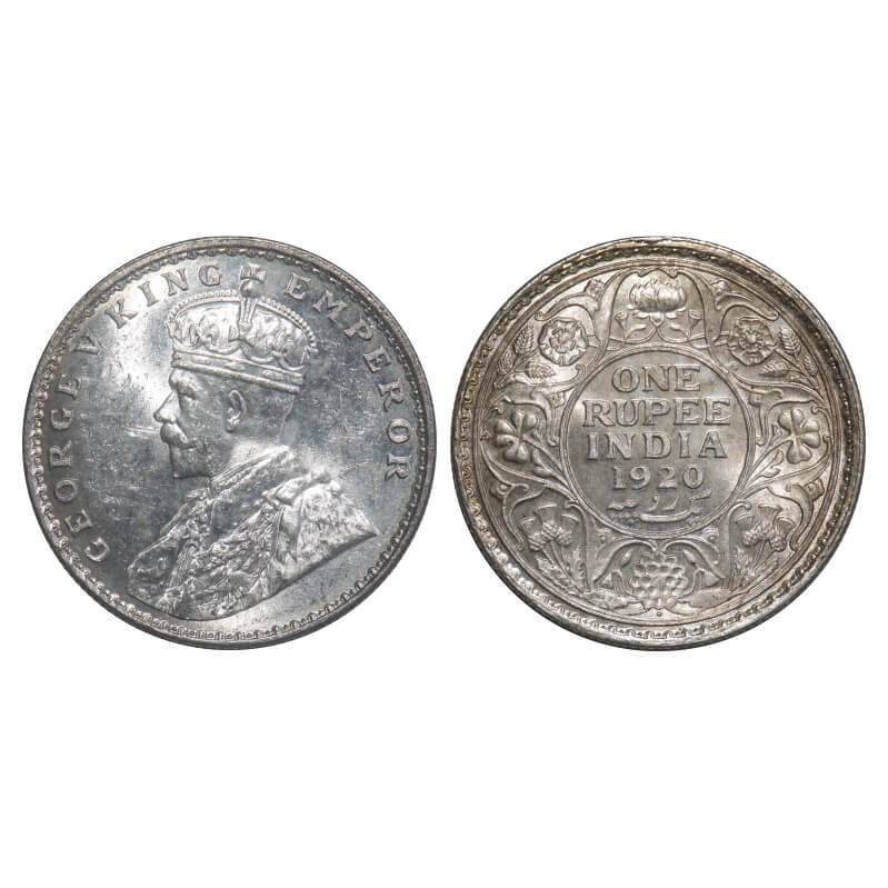 George V, Silver, Rupee, 1920, Calcutta Mint, No dot. F. Prid 216. GK 1041. NGC Slabbed MS 62. Rare...