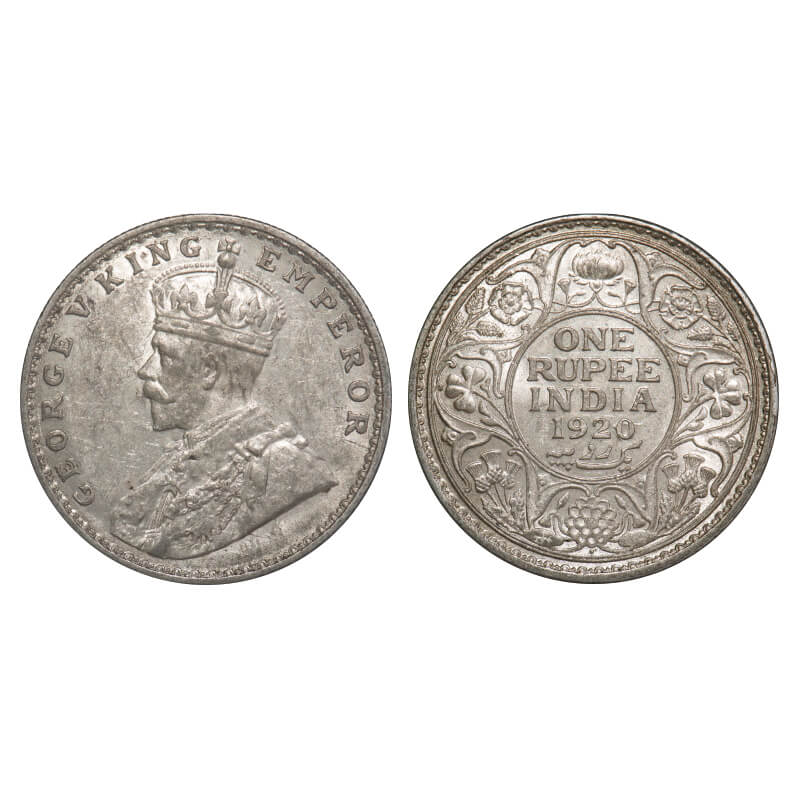 George V, Silver, Rupee, 1920, Bombay Mint, Dot, Ghost on Rev. F. Prid 226. GK 1042. Mint State, Toned. Very Scarce.