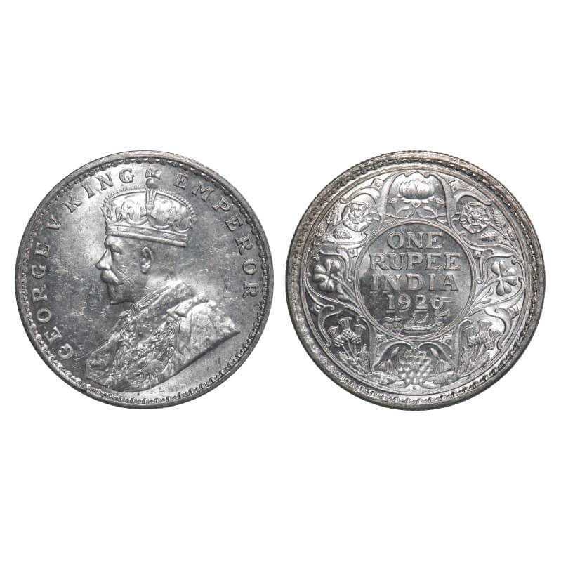 George V, Silver, Rupee, 1920, Bombay Mint, Dot, Ghost on Rev. F. Prid 226. GK 1042. Mint State with luster. Very Scarce.