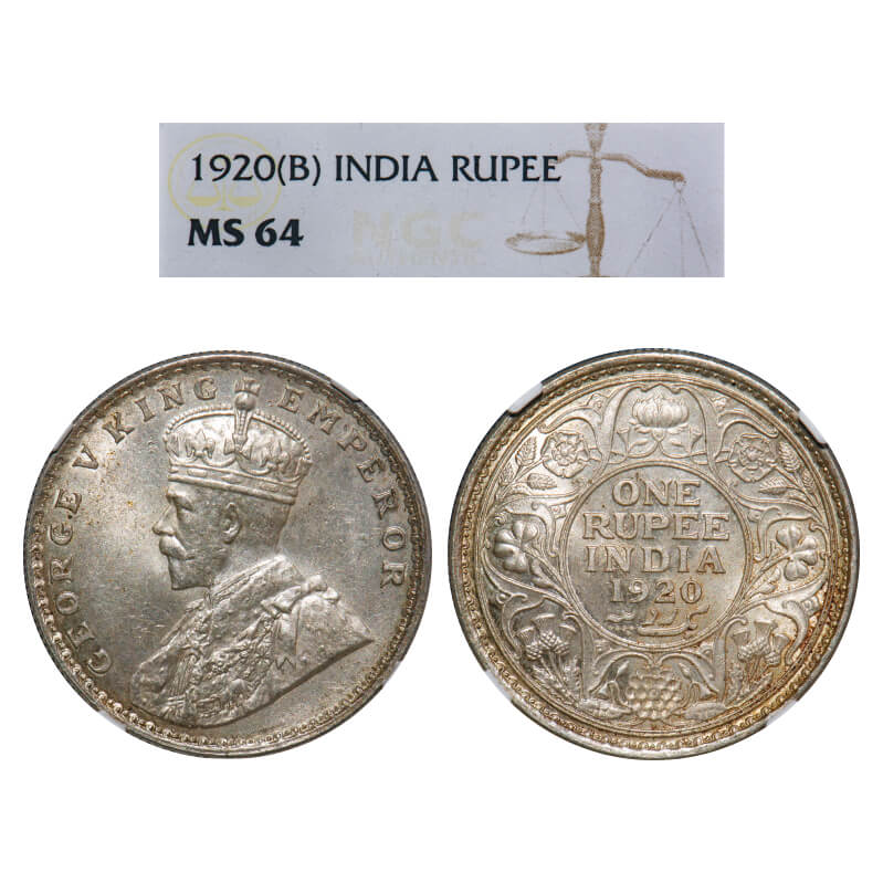 George V, Silver, Rupee, 1920, Bombay Mint, Dot. F. Prid 226. GK 1042. NGC Slabbed MS 64. Very Rare.