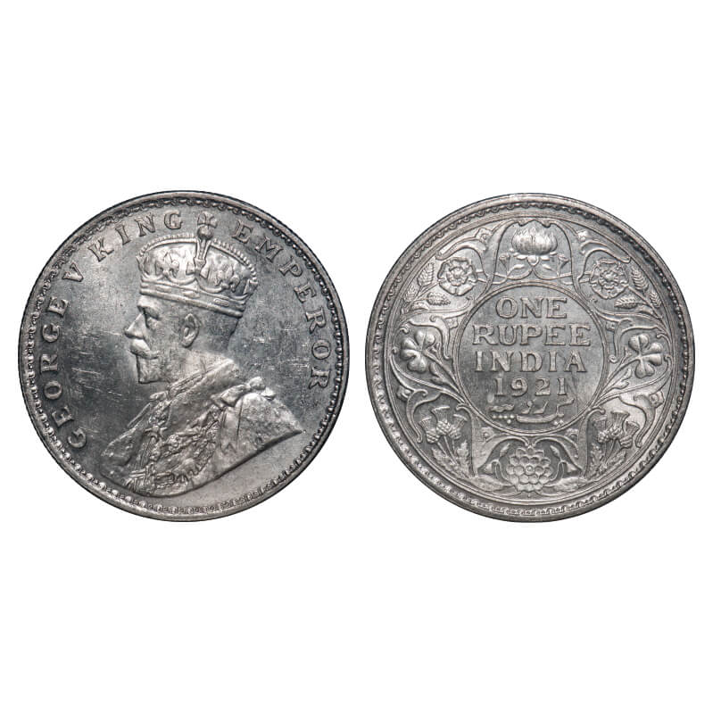 George V, Silver, Rupee, 1921, Bombay Mint, Dot. F. Prid 227. GK 1043. Brilliant Uncirculated. Rare.
