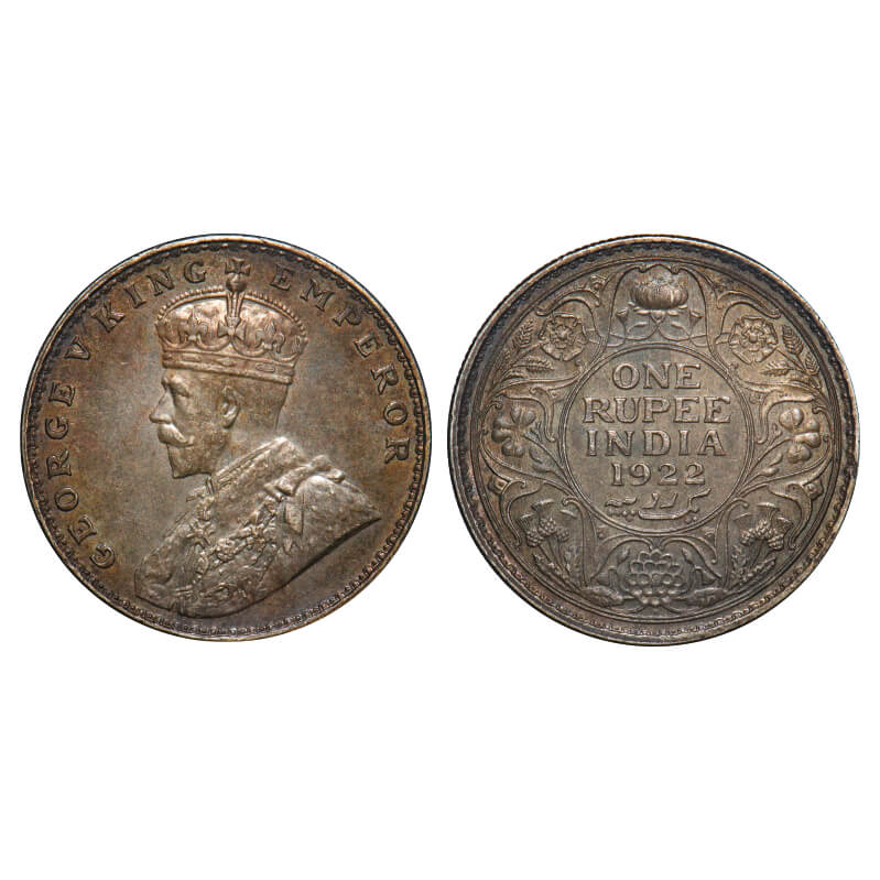 George V, Silver, Rupee, 1922, Bombay Mint, Dot. F. Prid 228. GK 1044. Uncirculated, Toned. Rare.