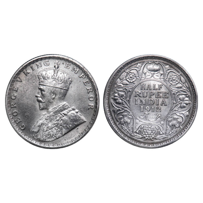 George V, Silver, Half Rupee, 1912, Calcutta Mint, No dot, Re-drawn Elephant. F. Prid 319. GK 1046. Extremely Fine+. Very Scarce.