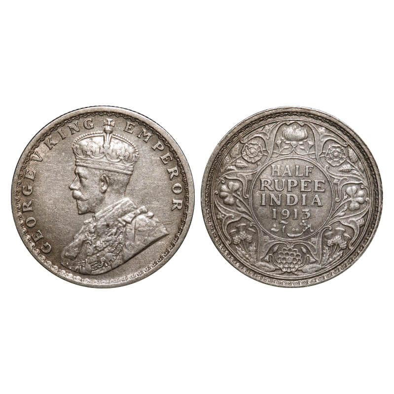 George V, Silver, Half Rupee, 1913, Calcutta Mint, No dot. F. Prid 320. GK 1048. Extremely Fine. Very Scarce.