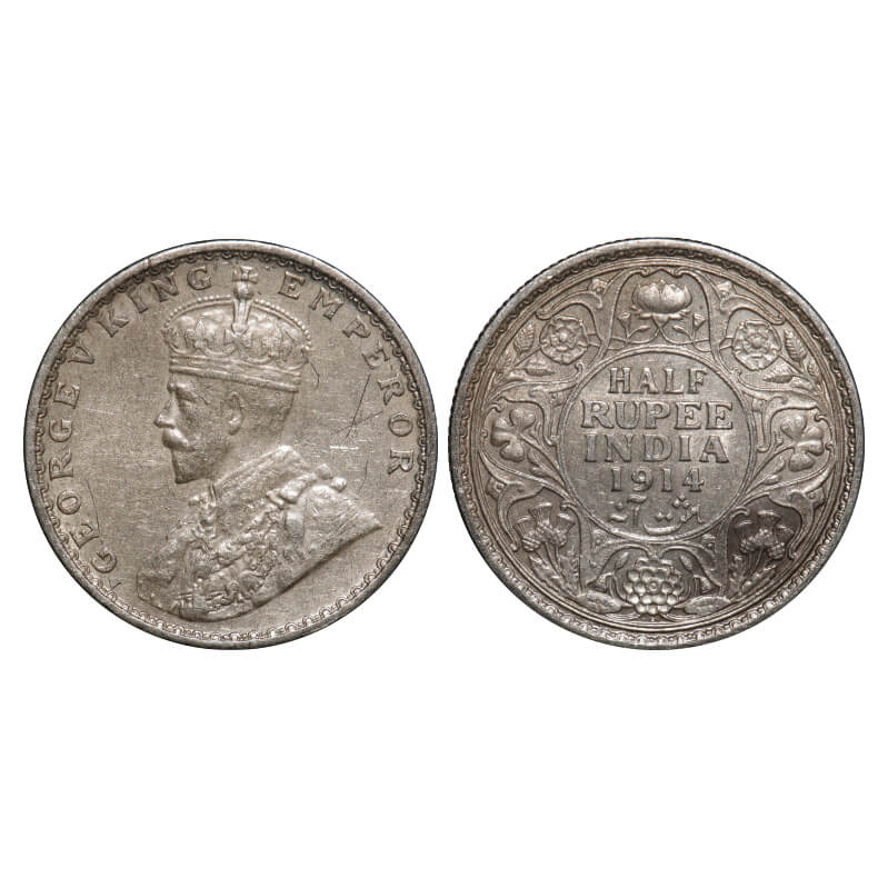 George V, Silver, Half Rupee, 1914, Bombay Mint, Dot. F. Prid 338. GK 1051. Extremely Fine. Scarce.