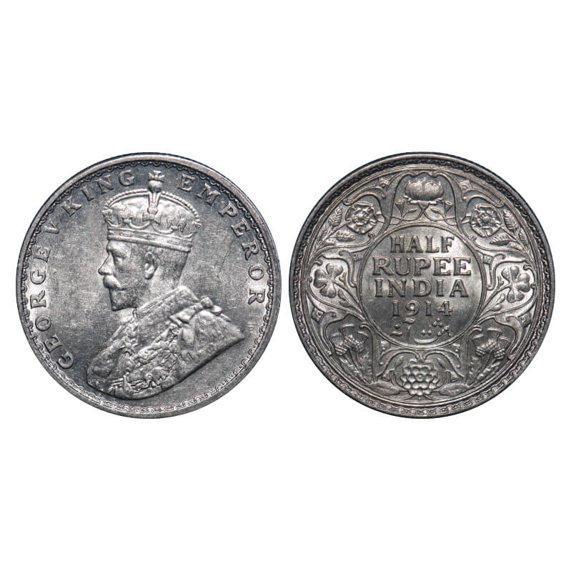 George V, Silver, Half Rupee, 1914, Bombay Mint, Dot. F. Prid 338. GK 1051. Uncirculated. Rare.