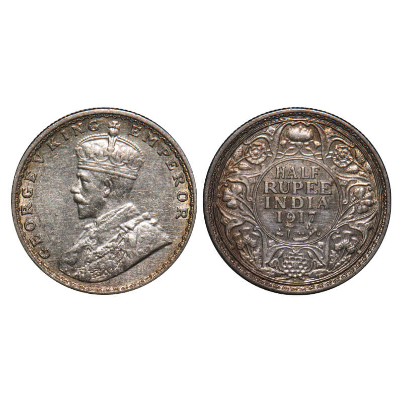 George V, Silver, Half Rupee, 1917, Bombay Mint, Dot. F. Prid 341. GK 1055. Extremely Fine. Scarce.