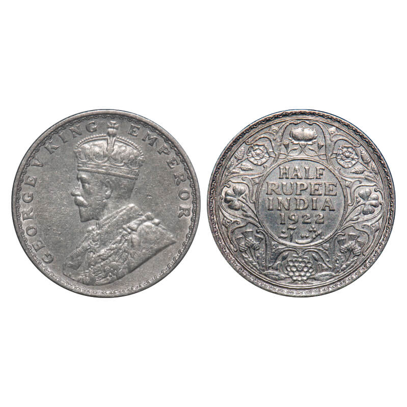 George V, Silver, Half Rupee, 1922, Calcutta Mint, No dot. F. Prid 325. GK 1059. Very Fine+. Scarce...