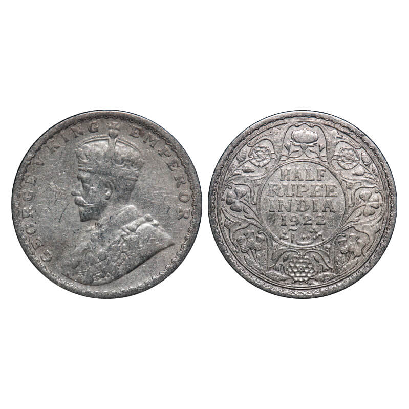 George V, Silver, Half Rupee, 1922, Bombay Mint, Dot. F. Prid 344. GK 1060. Very Fine. Scarce.