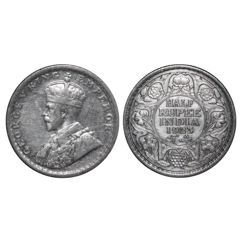 George V, Silver, Half Rupee, 1923, Calcutta Mint, No dot. F. Prid 326. GK 1061. Very Fine. Scarce.