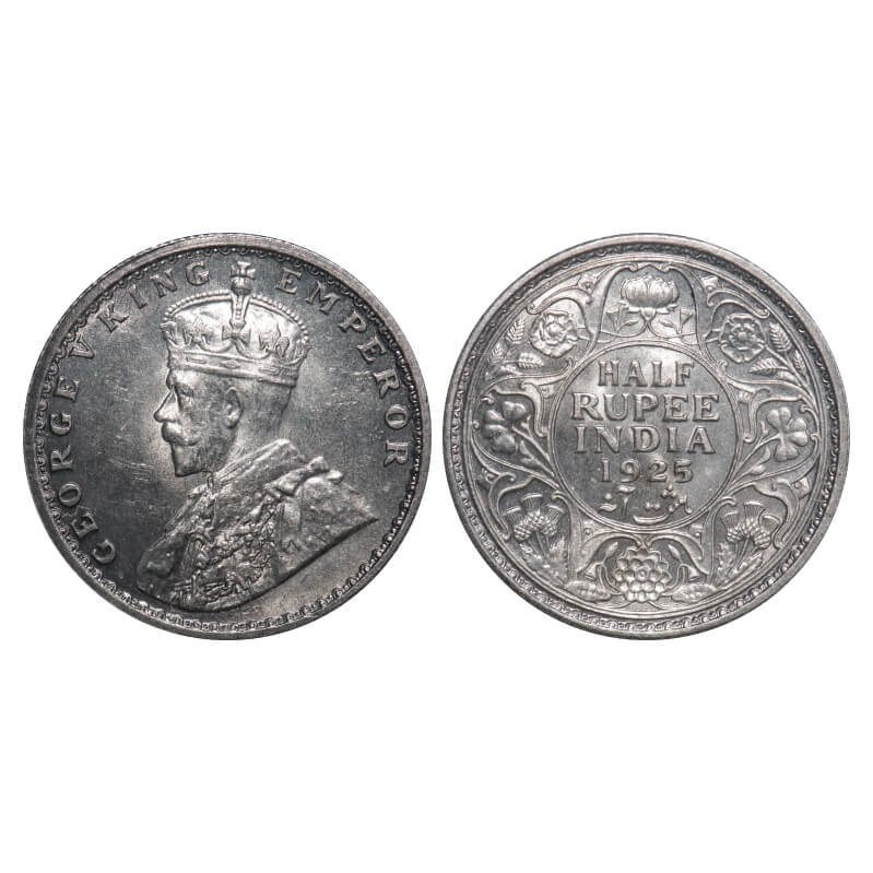 George V, Silver, Half Rupee, 1925, Calcutta Mint, No dot. F. Prid 328. GK 1065. Brilliant Uncirculated. Rare.