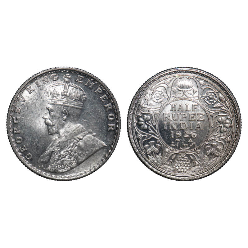 George V, Silver, Half Rupee, 1926, Calcutta Mint, No dot. F. Prid 329. GK 1067. Extremely Fine. Sc...