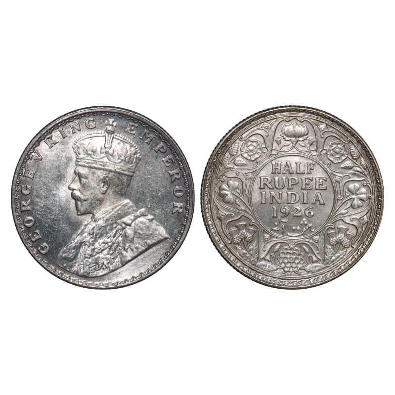 George V, Silver, Half Rupee, 1926, Bombay Mint, Dot. F. Prid 348. GK 1068. About Uncirculated. Very Scarce.