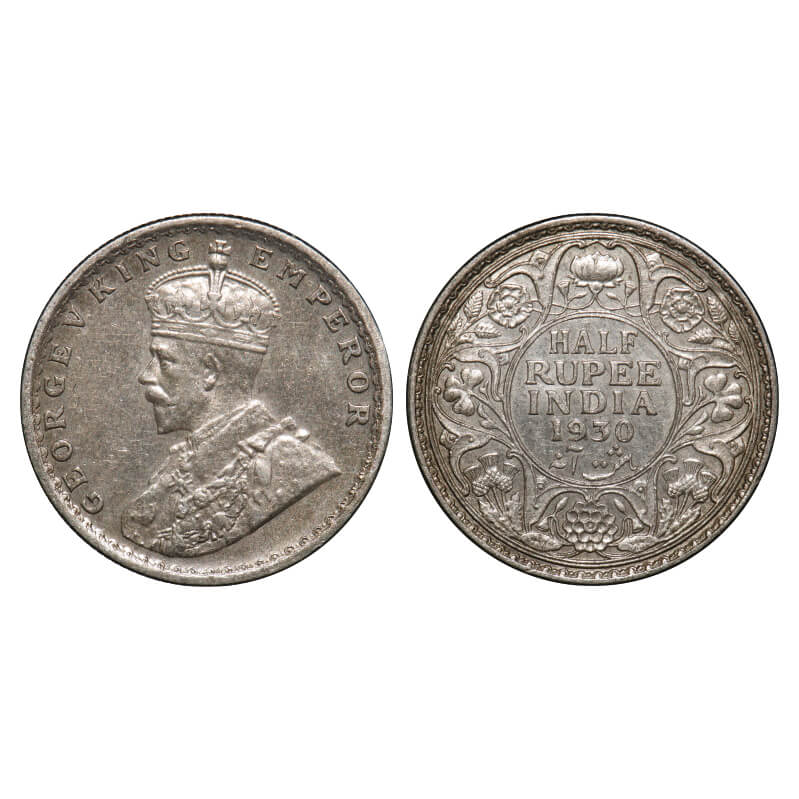 George V, Silver, Half Rupee, 1930, Calcutta Mint, No dot. F. Prid 332. GK 1072. Extremely Fine+. Scarce.