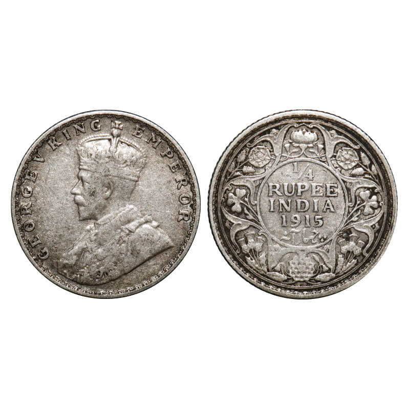 George V, Silver, 1/4 Rupee, 1915, Bombay Mint, Dot. F. Prid 457. GK 1088. Very Fine. Scarce.