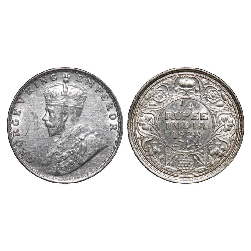 George V, Silver, 1/4 Rupee, 1928, Bombay Mint, Dot. F. Prid 459. GK 1095. Extremely Fine+. Scarce.