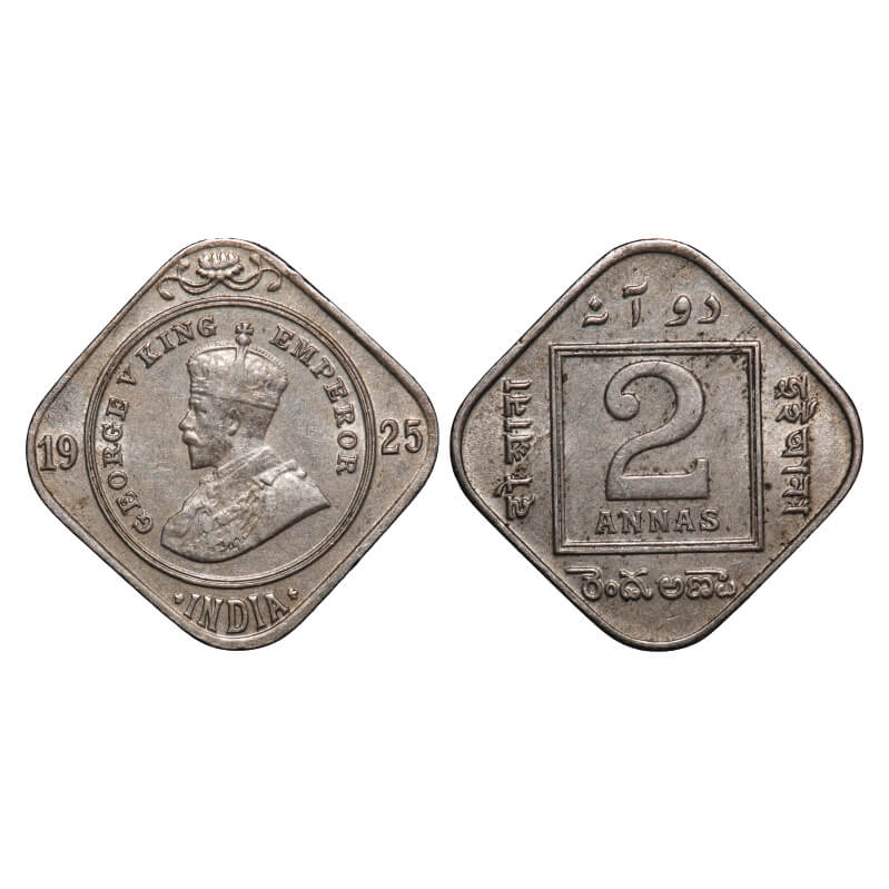 George V, Copper-Nickel, 2 Annas, 1925, Calcutta Mint, No dot. F. Prid 885. GK 1126. Extremely Fine+. Very Scarce.