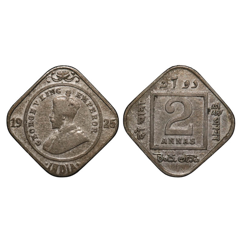 George V, Copper-Nickel, 2 Annas, 1925, Bombay Mint, Dot. F. Prid 898. GK 1127. Very fine. Scarce.