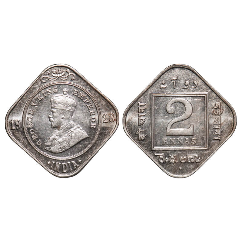 George V, Copper-Nickel, 2 Annas, 1928, Bombay Mint, Dot. F. Prid 901. GK 1133. Uncirculated. Rare.