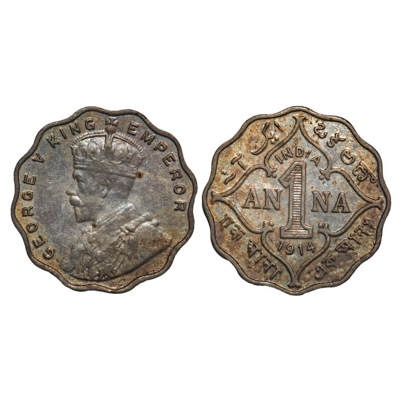 George V, Copper-Nickel, 1 Anna, 1914, Bombay Mint, No dot. F. Prid 944. GK 1144. Almost Uncirculated. Very Scarce.
