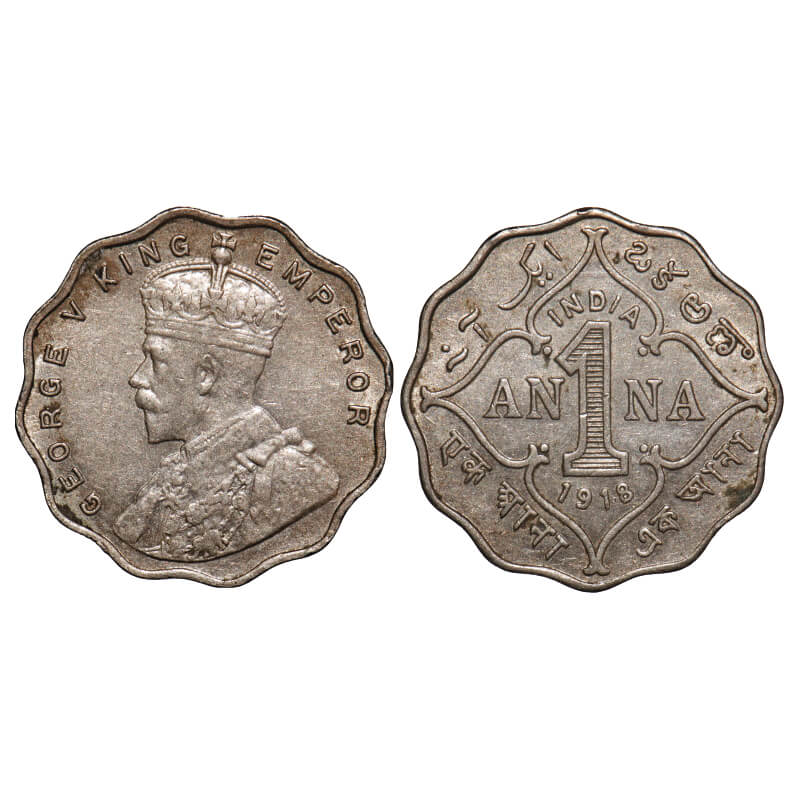 George V, Copper-Nickel, 1 Anna, 1918, Bombay Mint, No dot. F. Prid 948. GK 1148. About Uncirculated. Very Scarce.