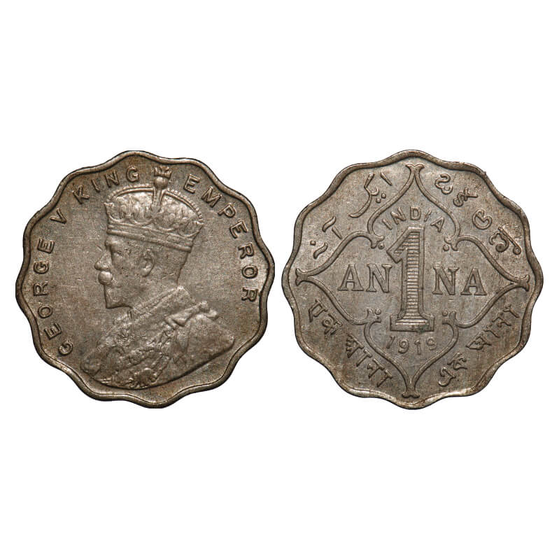 George V, Copper-Nickel, 1 Anna, 1919, Bombay Mint, No dot. F. Prid 949. GK 1149. About Uncirculated. Scarce.