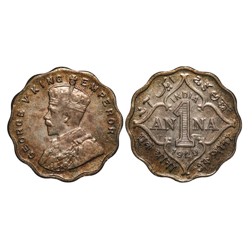 George V, Copper-Nickel, 1 Anna, 1929, Calcutta Mint, No dot, Ghost on Rev. F. Prid 935. GK 1162. About Uncirculated. Scarce.