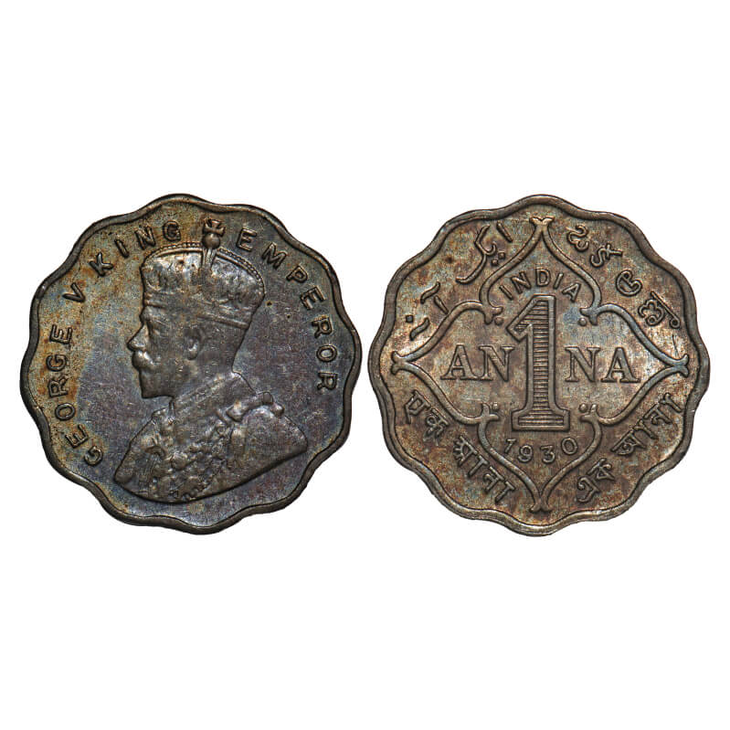 George V, Copper-Nickel, 1 Annas, 1930, Calcutta Mint, No dot, Ghost on Rev. F. Prid 936. GK 1163. Almost Uncirculated. Very Scarce.