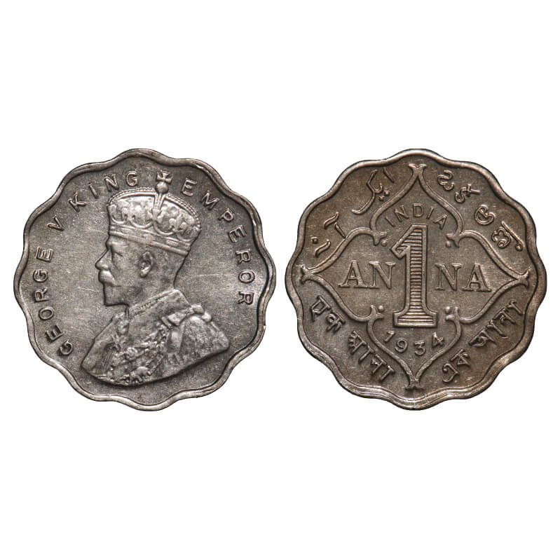 George V, Copper-Nickel, 1 Annas, 1934, Calcutta Mint, No dot, Ghost on Rev. F. Prid 938. GK 1165. ...