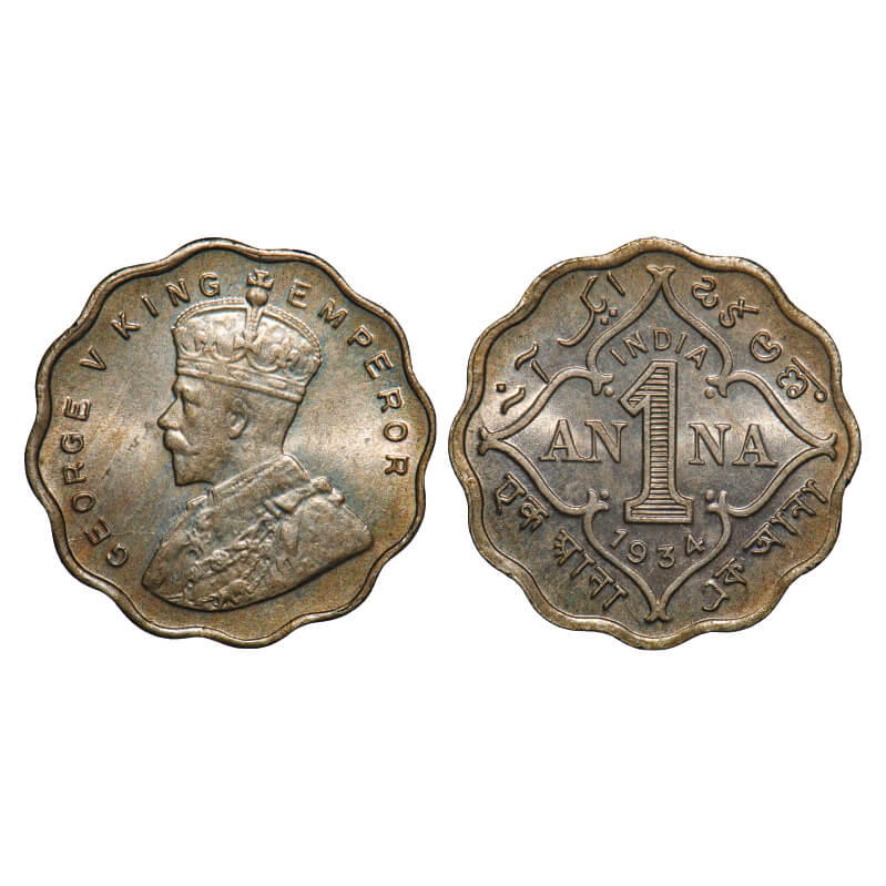 George V, Copper-Nickel, 1 Anna, 1934, Calcutta Mint, Dot. F. Prid 938. GK 1165. Uncirculated. Scarce.