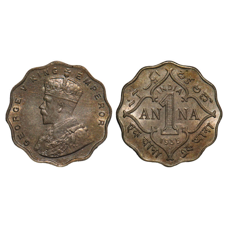 George V, Copper-Nickel, 1 Annas, 1935, Bombay Mint, Dot. F. Prid 957. GK 1166. Brilliant Uncirculated, Toned. Rare.