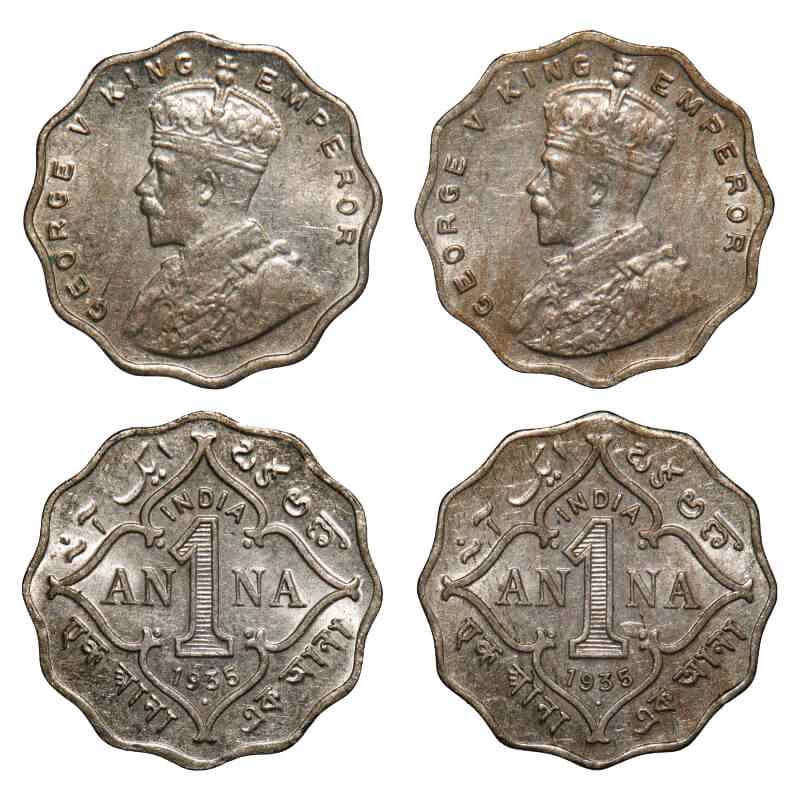 George V, Copper-Nickel, 1 Anna, (2 coins), 1935, Bombay Mint, Dot. F. Prid 957(2). GK 1166(2). Uncirculated to Brilliant Uncirculated. Very Scarce.