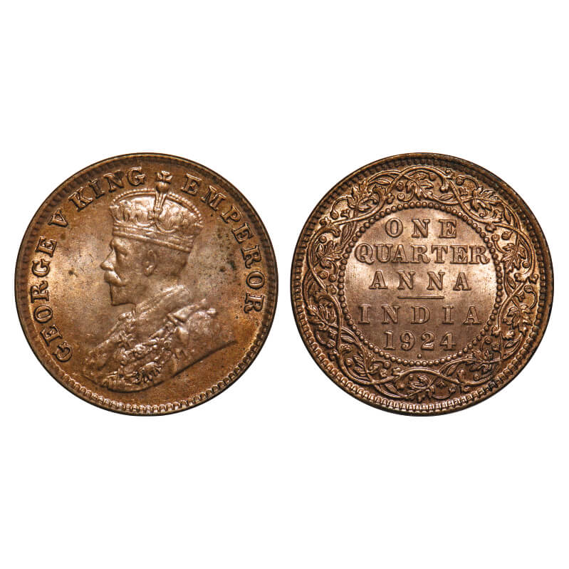 George V, Bronze, Quarter Anna, 1924, Bombay Mint, Dot. F. Prid 677. GK 1180. Brilliant Uncirculated. Rare.