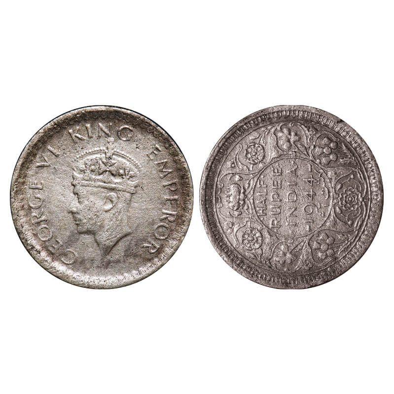 | George VI, Half Silver, Half Rupee, 1844, Lahore Mint, B/II, 'L' raised, Head Type II, Security edge, Error, Almost 9'o clock on Rev. F. Prid Unlisted. GK 1314. Very Fine, Cleaned. Rare. |