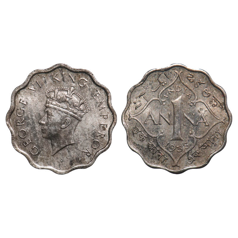 George VI, Copper-Nickel, 1 Anna, 1938, Calcutta Mint, Head Type I, No dot. F. Prid 959. GK 1378. About Uncirculated. Very Scarce.