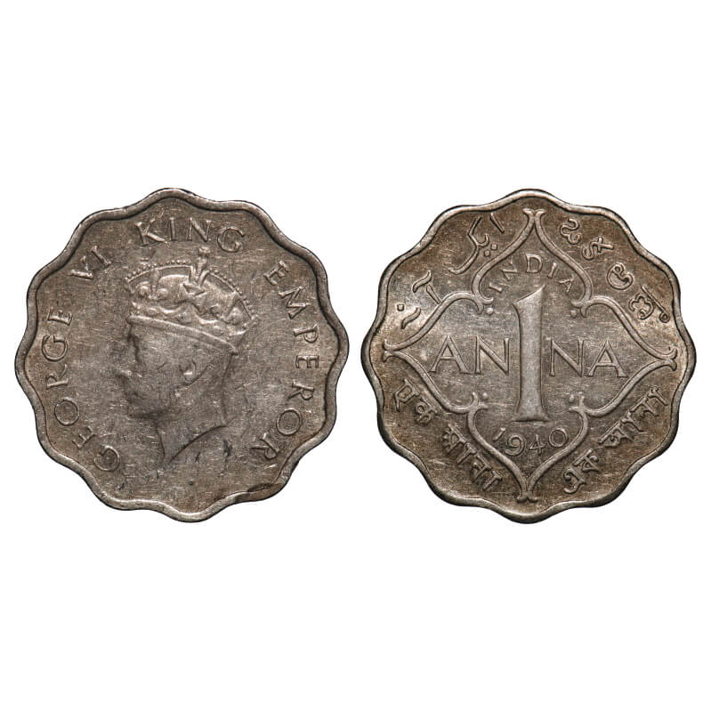 George VI, Copper-Nickel, 1 Anna, 1940, Calcutta Mint, No dot, Head Type I. F. Prid 961. GK 1384. About Uncirculated. Very Scarce.
