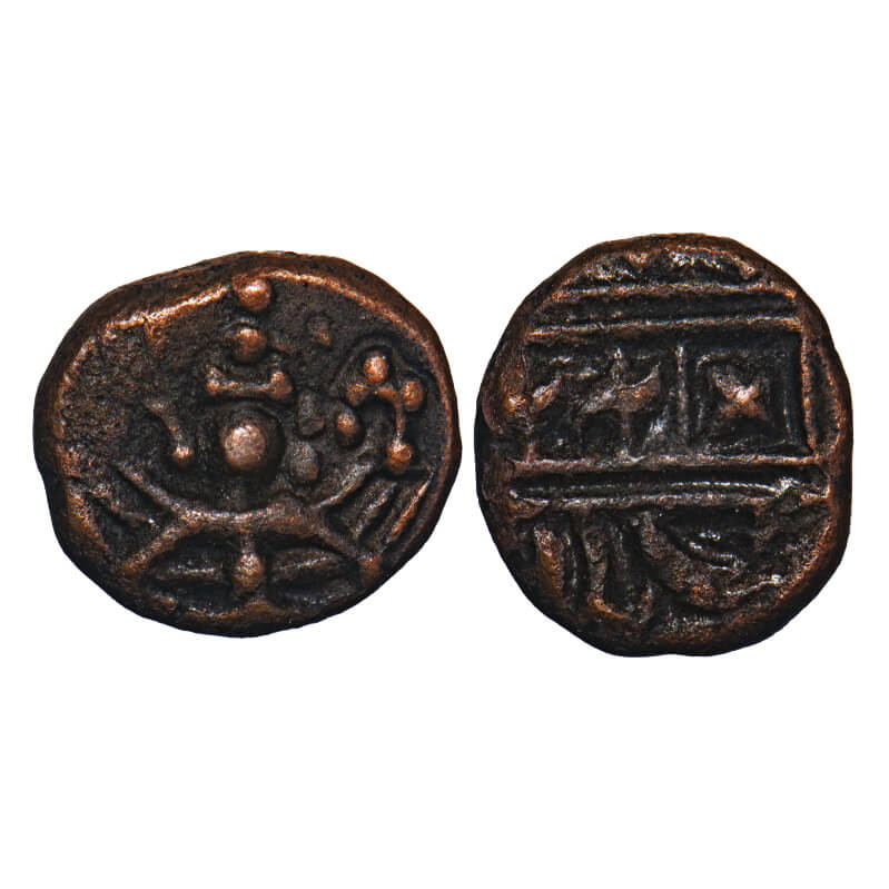 Post Vijayanagar, Nayaka issue, (17-18c AD), Copper Kasu fraction, 1.05g, 12.50x11.74 mm, Obv: Garu...