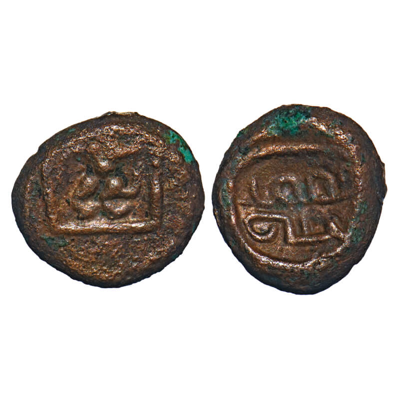 | Post Vijayanagar, Local Polygars, Ramana, (17-18c AD), Copper Kasu, 2.74g, 12.22x13.33 mm, Obv: Standing deity Hanuman, facing left, Rectangular border around, Rev: Tamil legend ‘Ramana’, Circular border around. Ref: Unlisted in major publications. Very Fine, Very Scarce. |