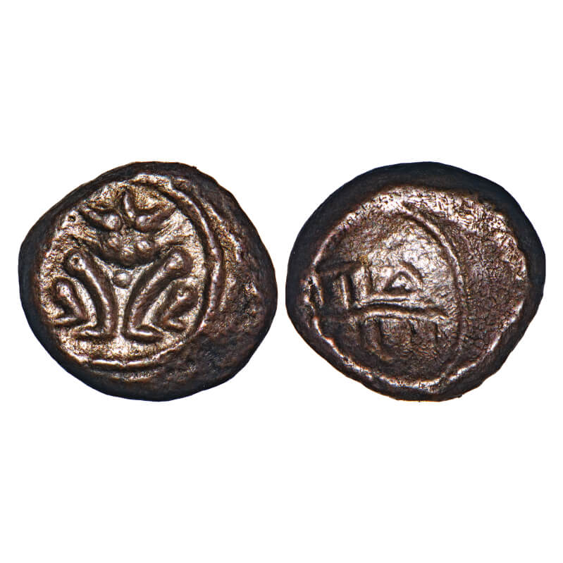 | Post Vijayanagar, Local Polygars, Ramana, (17-18c AD), Copper Kasu, 2.48g, 11.51x12.45 mm, Obv: Seated Narasimha, facing front, Circular border around, Rev: Tamil legend ‘Ramana’, Circular border around. Ref: Unlisted in major publications. Very Fine, Rare. |