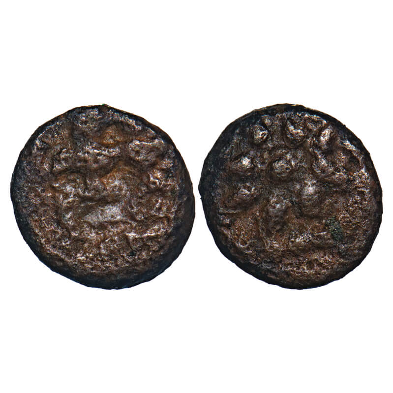 Nayaks of Senji, (16th century), Copper, 1.34g, 10.30x9.95mm, Obv: two Dieties in half seated posture, Rev: Flower. Very Fine, Rare.